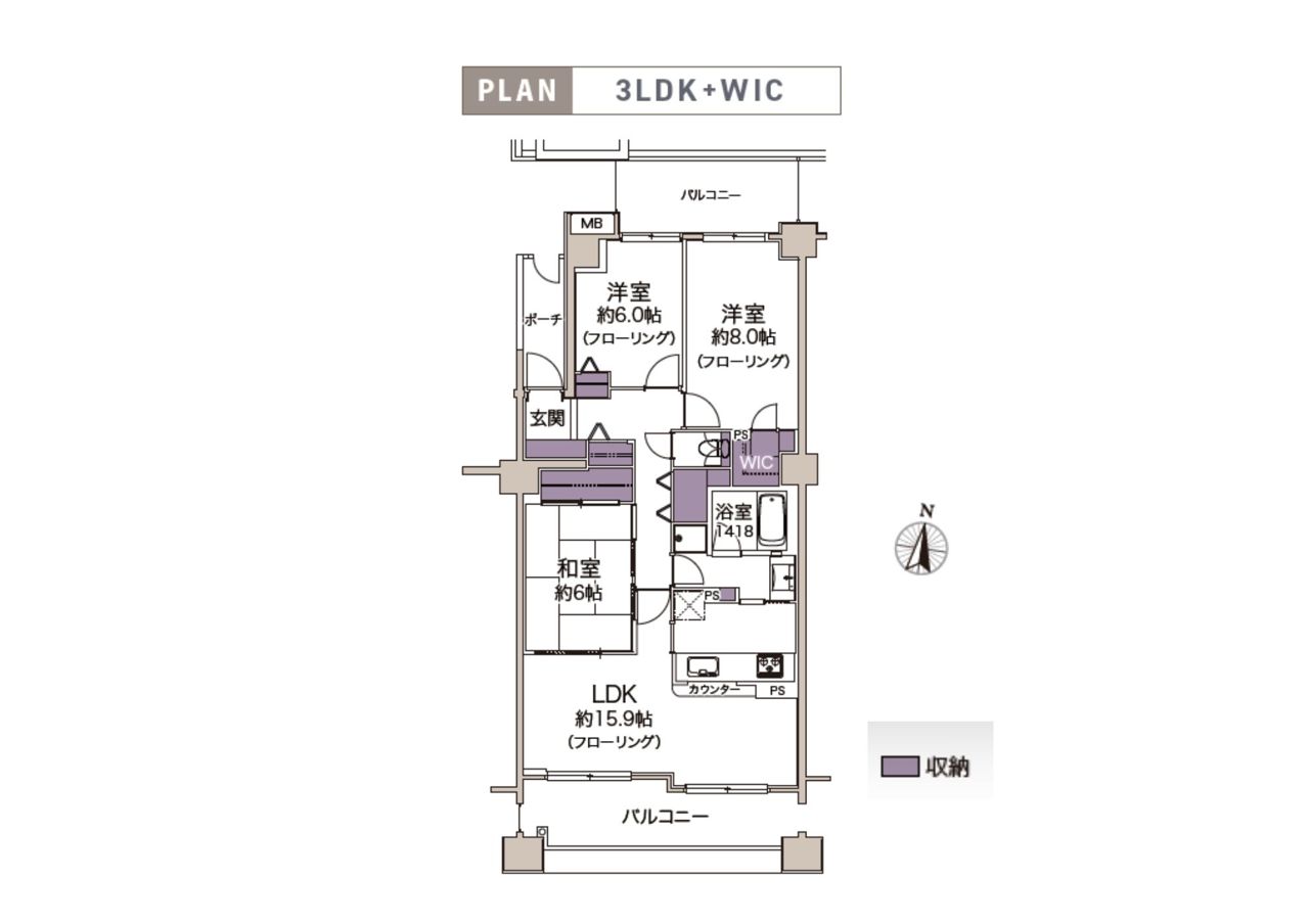 | 間取 | 3LDK (LDK15.9帖、洋室8帖、洋室6帖、和室6帖) | ||